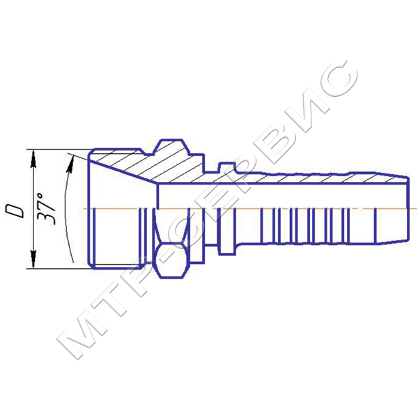 Фитинг гидравлический ORFS (Г) прямого исполнения. Накидная гайка дюймовая резьба. Уплотнение по фланцу ответной детали.